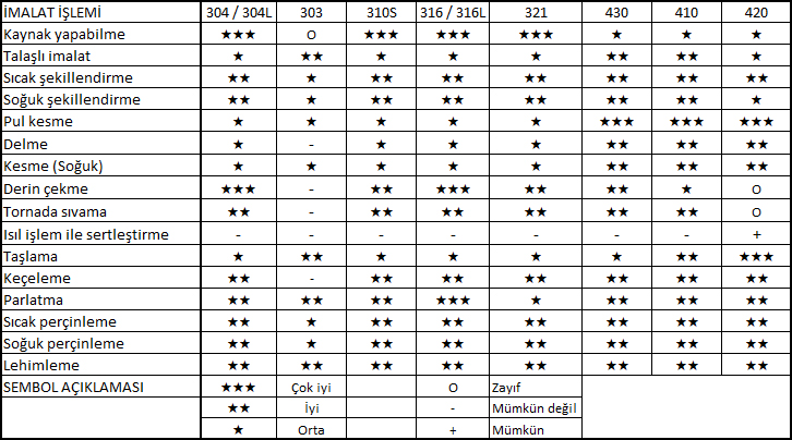 PASLANMAZ ÇELİKLERİN İMALAT ÖZELLİKLERİ